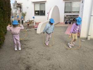 年明けから縄跳びに挑戦しているかぜ組の子ども達。