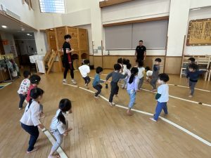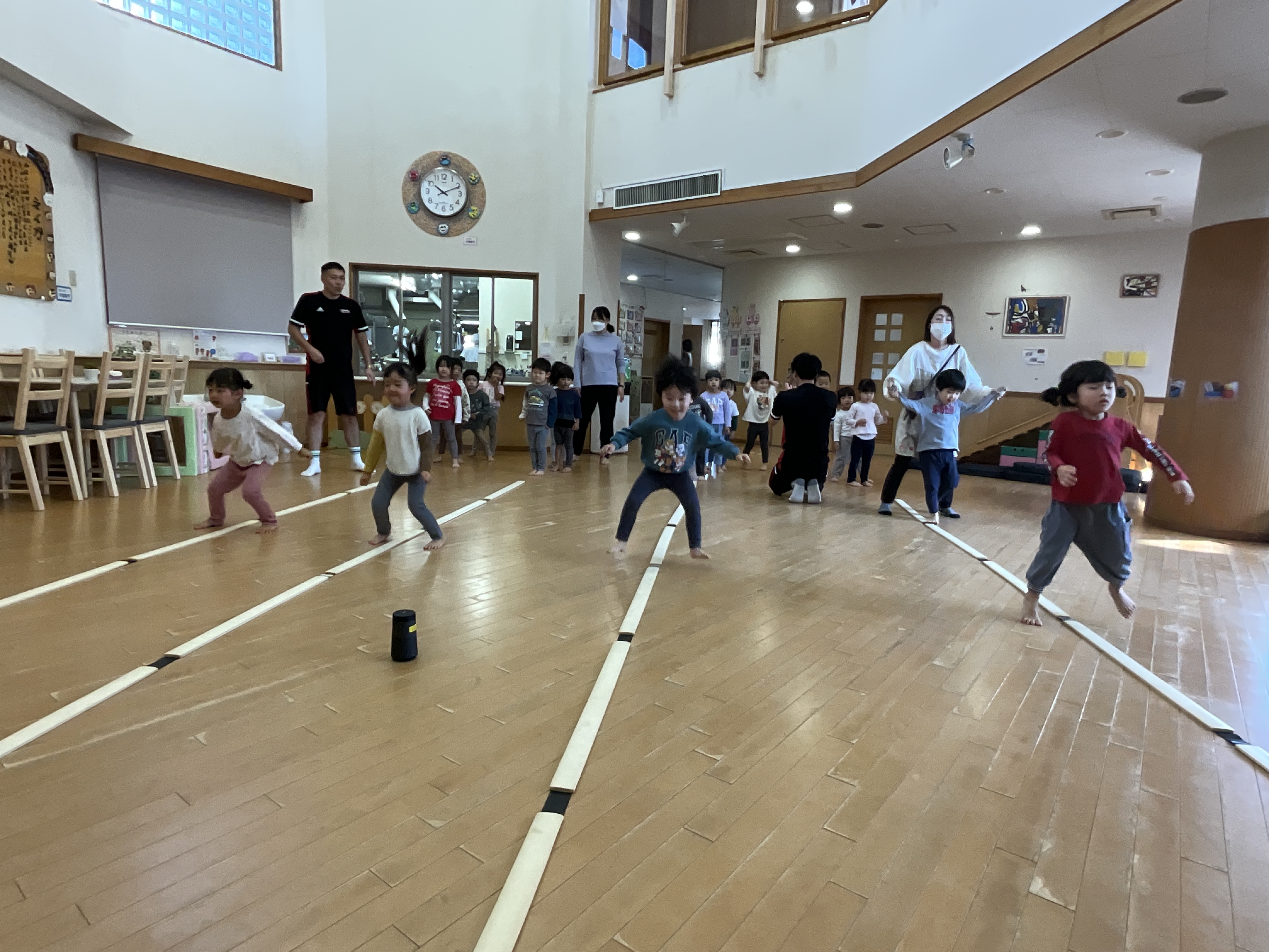 保育のようす くも組 体操教室 2025年11月12日 | by aoba_cms 体操教室がある日は、真剣モードの子ども達。話を聞き身体の使い方を学ぶ姿勢には物凄いパワーを感じます。今日は、リズムに合わせて飛んだり跳ねたり。最後は、中当てに挑戦しました。次回の体操教室まであと何日・・・?
