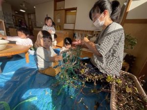 一つの種から始まり、子ども達の成長を見守りながらぐんぐん大きくなっていった朝顔さん。 姿を変えながら子どもたちの感性を育て、素敵な思い出として形に残りました。 大切に育て、花が咲いたことで慈しむ気持ちが育まれ、色や感触など様々なことを学び、楽しむことができました。出来上がったリースを見ながら楽しかったことをみんなで振り返ろうと思います。