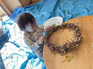 長い蔓をまとめると…なんとリースが出来上がりました!
