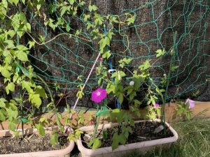 種から大切に育てた朝顔。毎日、じょうろで水やりしていました