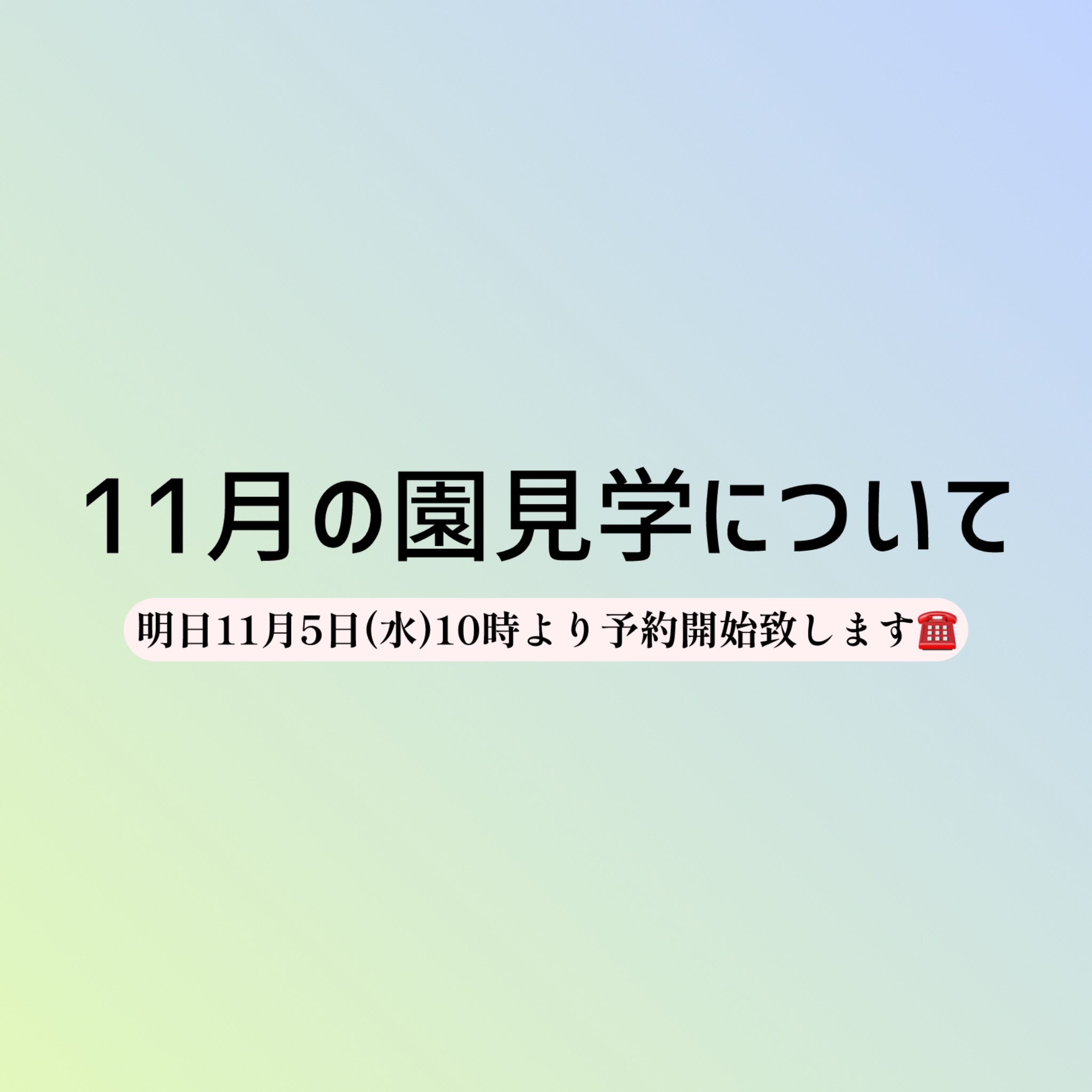 明日、11月5日(水)10時より、11月分の園見学の予約を開始致します。予約はお電話にてお願いします。