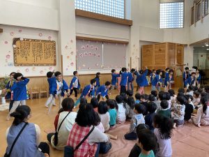 そして在園児からは、代表してかぜ組とそら組がメッセージを伝え、
