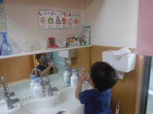 保育園に帰ってきた後は、しっかり手洗いをしています。