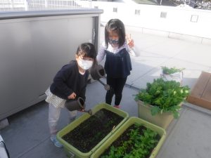 かぜ組さんも一緒に水やりを行い、ぐんぐん成長中です!