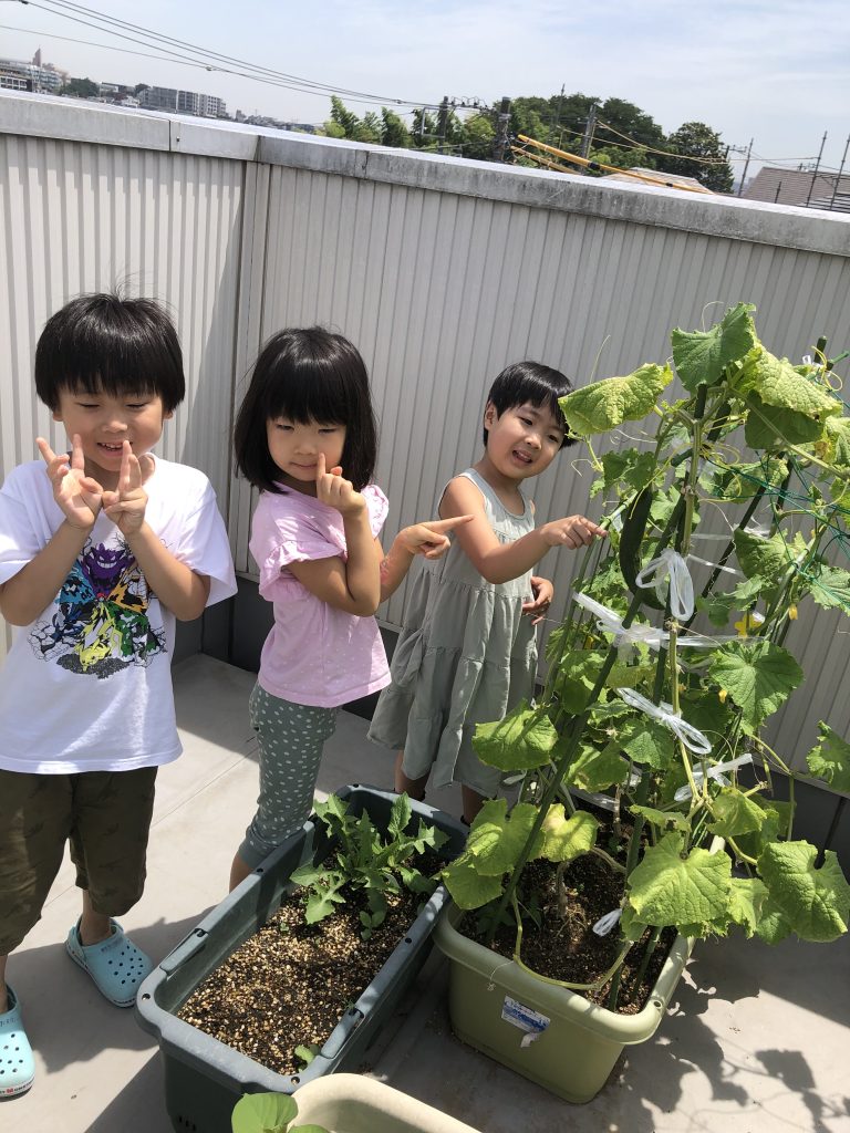 今回使うきゅうりは5本。全て園で採れたものです!