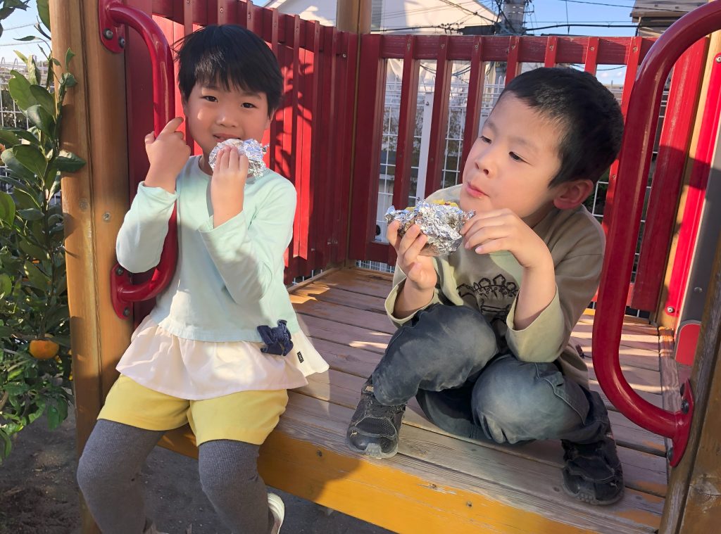 お腹いっぱい食べ、大満足で焼き芋体験を終えたそら組。