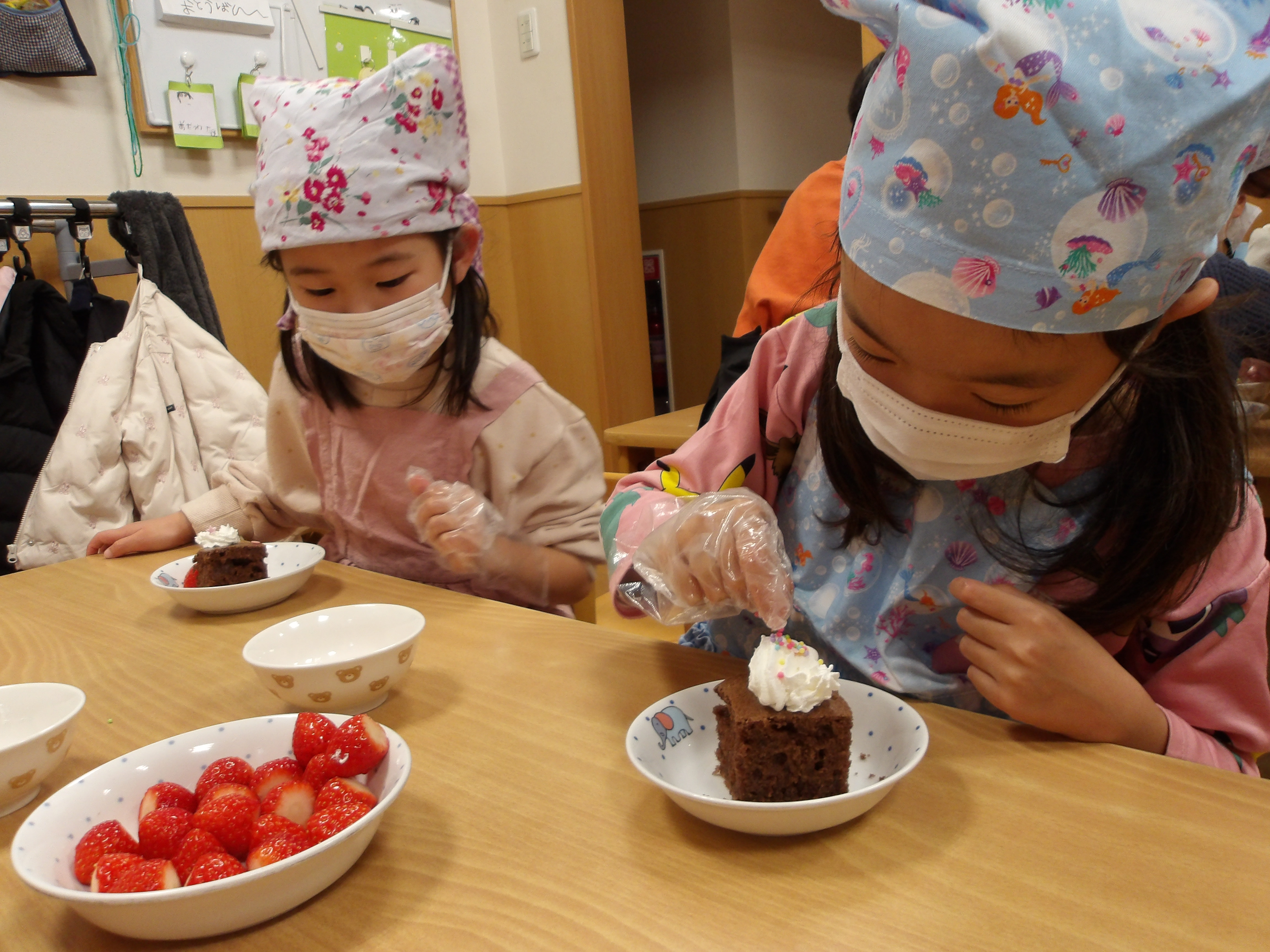 イベント, 保育のようす クリスマスケーキ 2025年12月25日 | by authormitsuzawa クリスマスケーキのデコレーションをしました。 クリームをしぼって、トッピングシュガーやイチゴを自分で乗せて飾りつけ。 KODAK Digital Still Camera KODAK Digital Still Camera KODAK Digital Still Camera 「食べるのがもったいない!」「ママにも食べさせたいな~」と言いながら、美味しくいただきました! KODAK Digital Still Camera KODAK Digital Still Camera