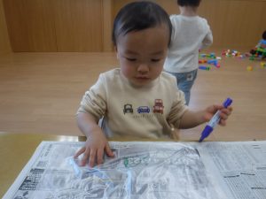 福笑いをしました。上手くお顔になっているかな??
