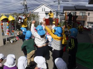 そら組が、にじ、ほし、つき組にソーラン節を披露しました