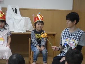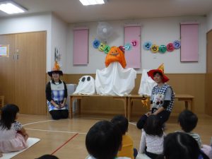 園長先生からのお話には、雨のお話やハロウィンの由来についてのお話があり、