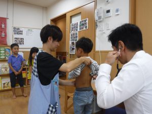 少し緊張した様子の子どもたちでしたが、ほとんどの子が落ち着いて診てもらう事が出来ました。