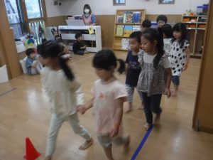 くも組は、合同で行うリズム遊びに参加する事が初めてでしたが