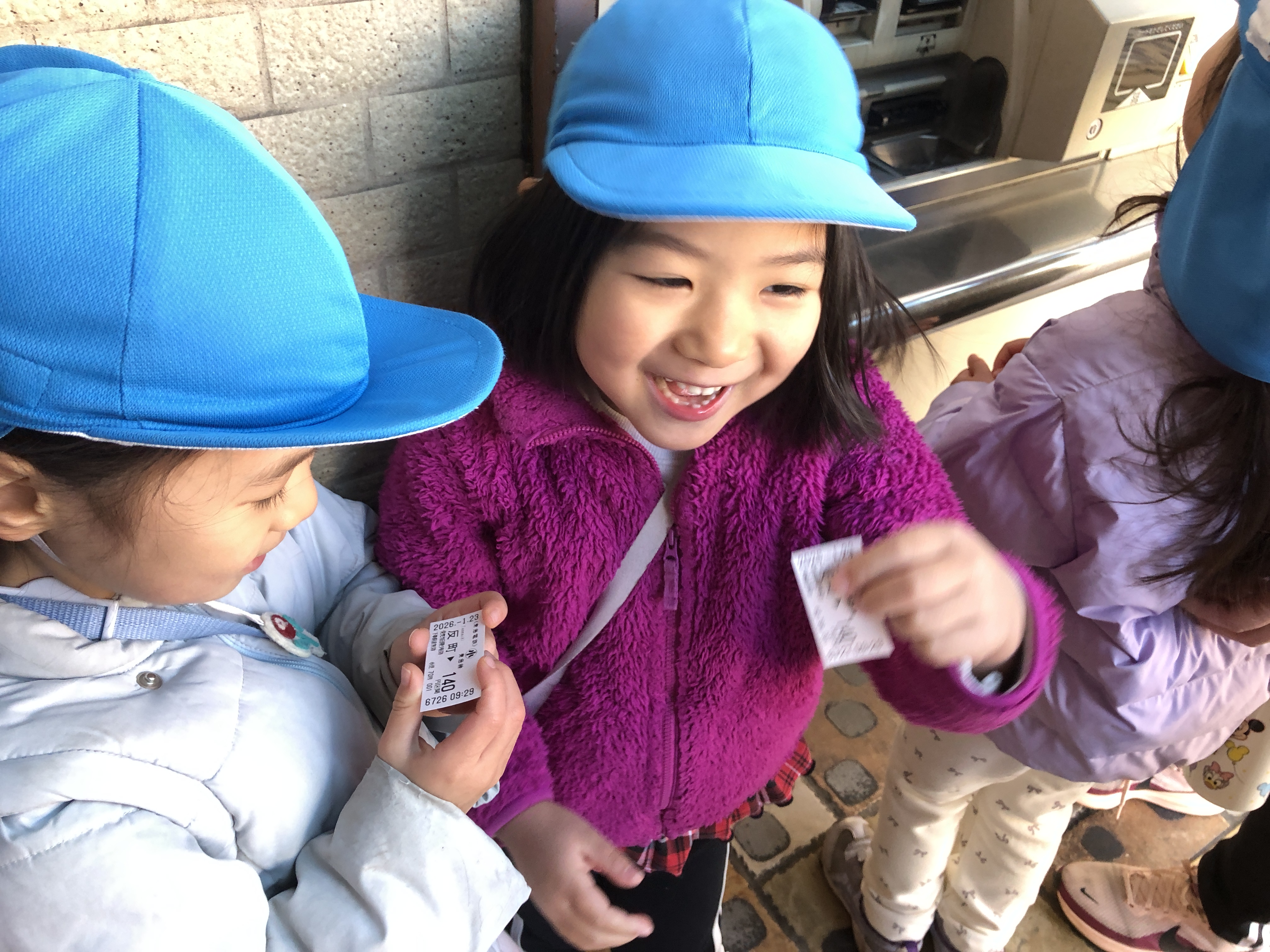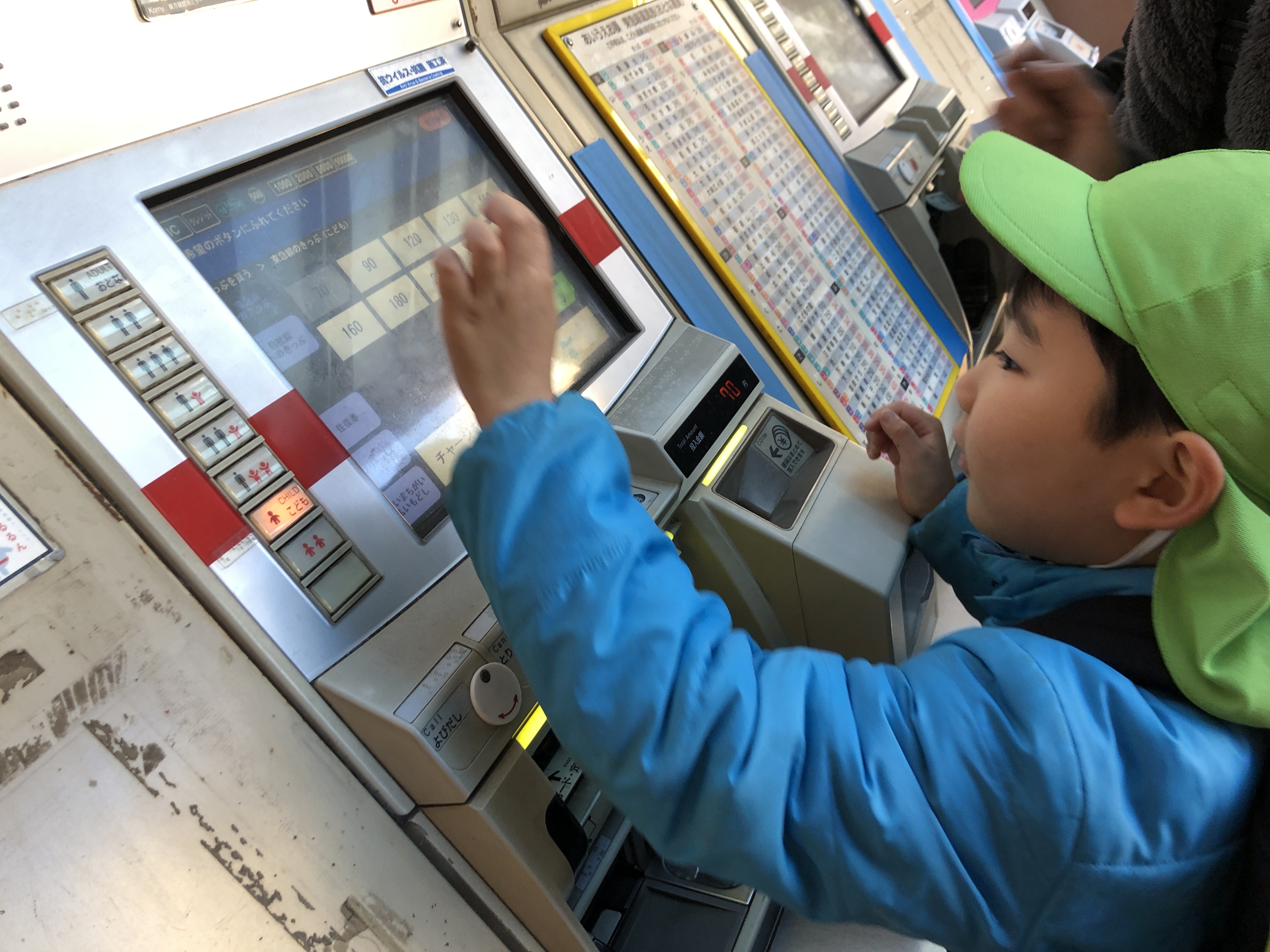 往復の道のりは電車。切符を買うだけでウキウキの子どもたちです。