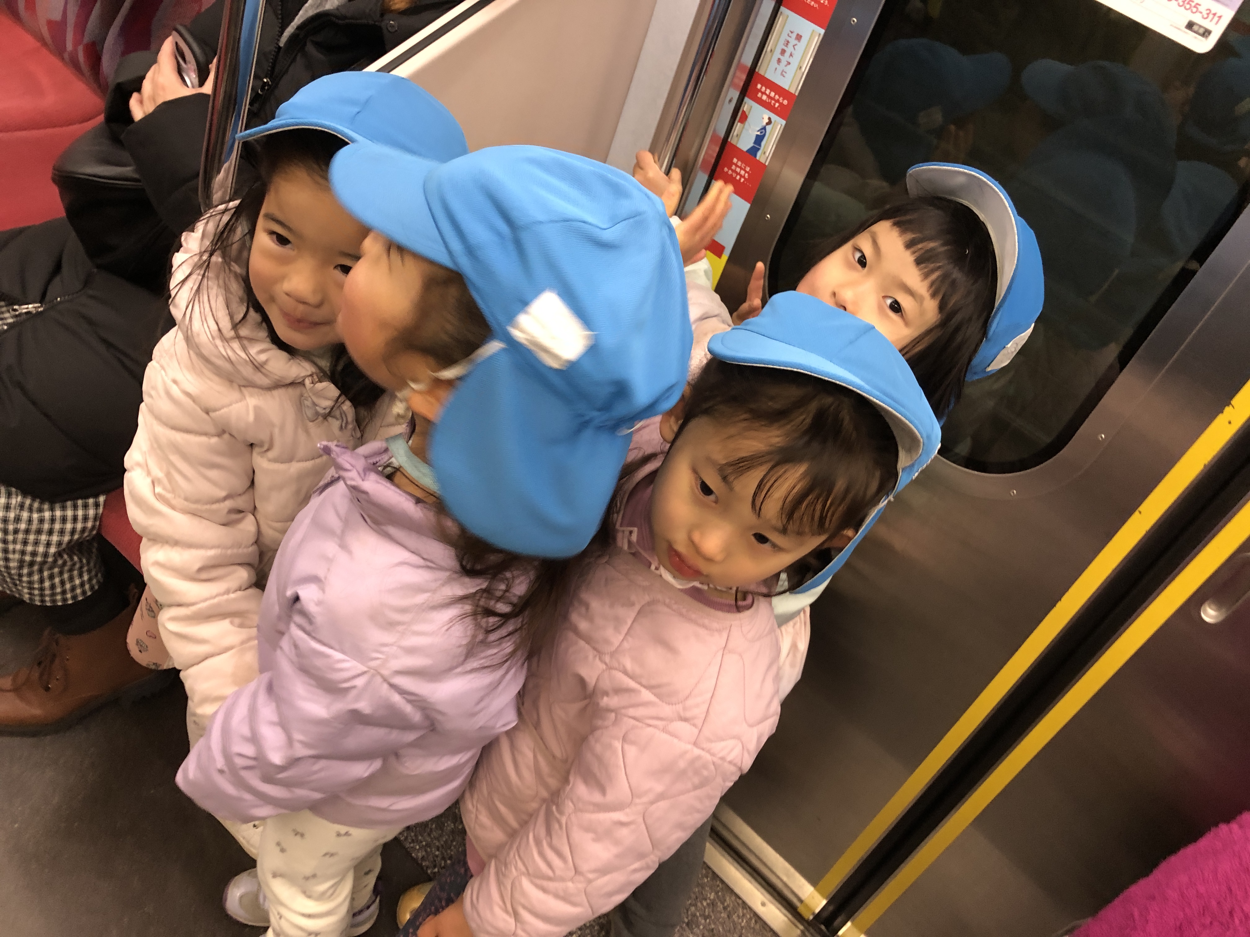 電車の中では静かに静かに…と思いながらも、喜びを隠せない様子がかわいらしいです。