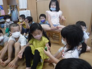 保育士が「ハート型になっているかな?」と聞くと、星型を経験した子ども達は、