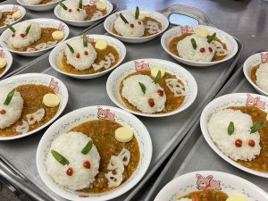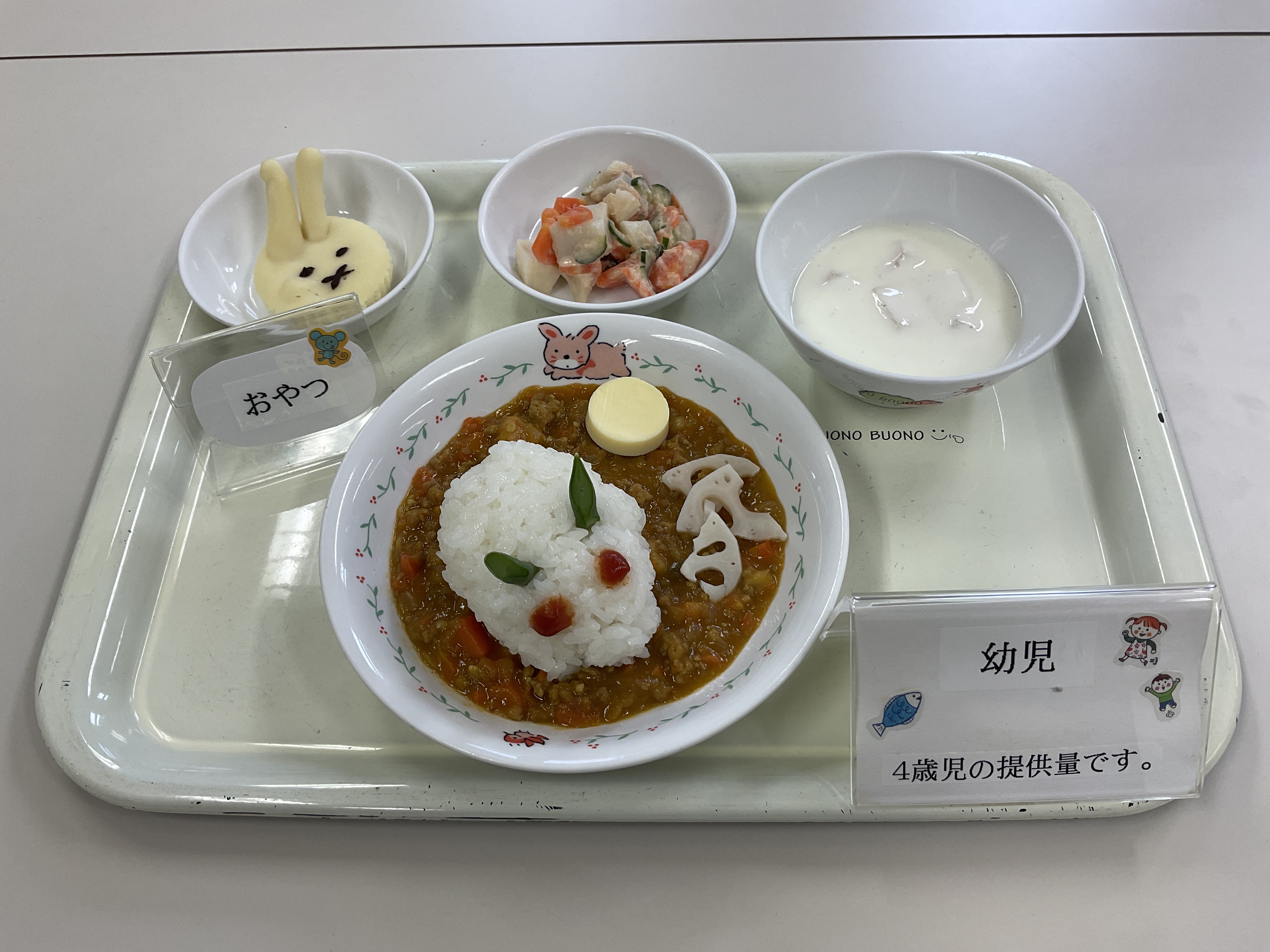 お月見カレー・里芋とツナのサラダ・フルーツヨーグルト