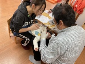 かぜ組・そら組では染め出しをし、歯科衛生士さんに歯磨き指導をしていただきました。