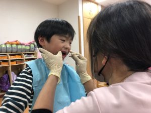 緊張しながらも元気に名前を言って口を大きく『あーん』と開けて受診していました。