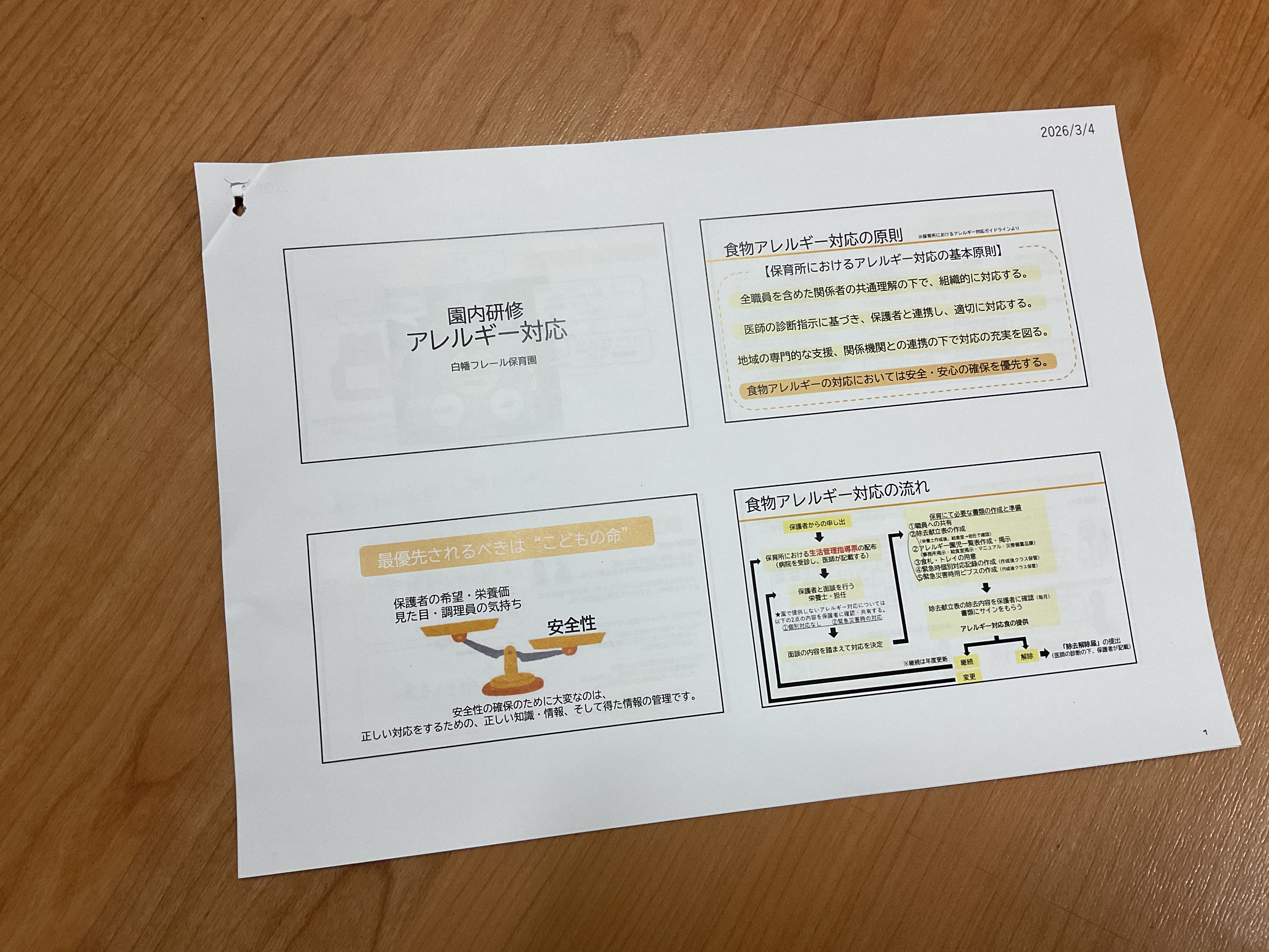栄養士の主催の下、職員でアレルギー児の対応や食事の提供方法等について確認を兼ねた研修を行いました。