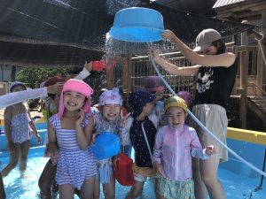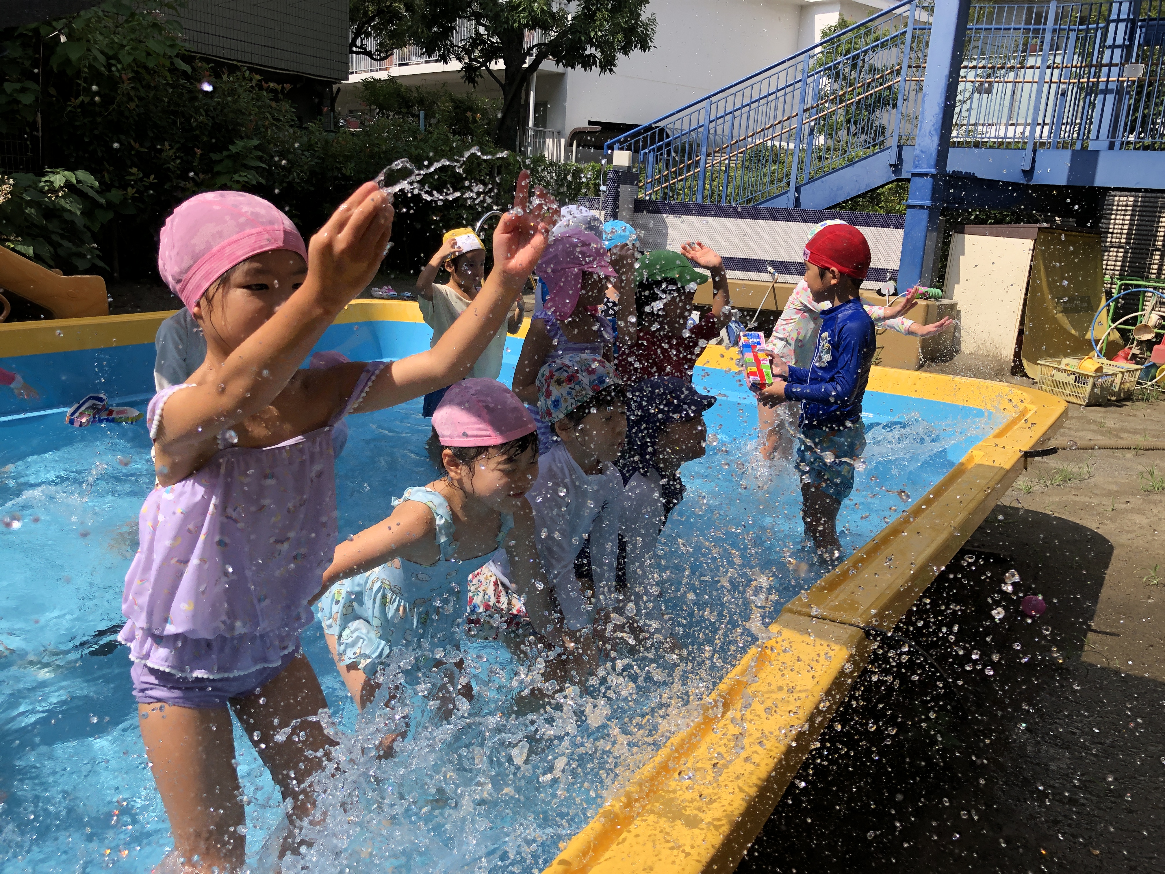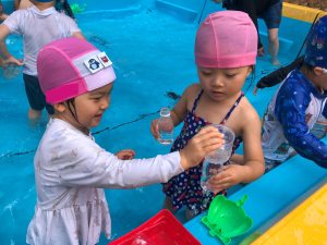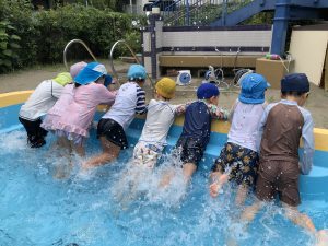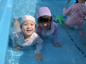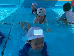 水のかけあい、ワニさん泳ぎなど、色々な遊び方で大盛り上がり。