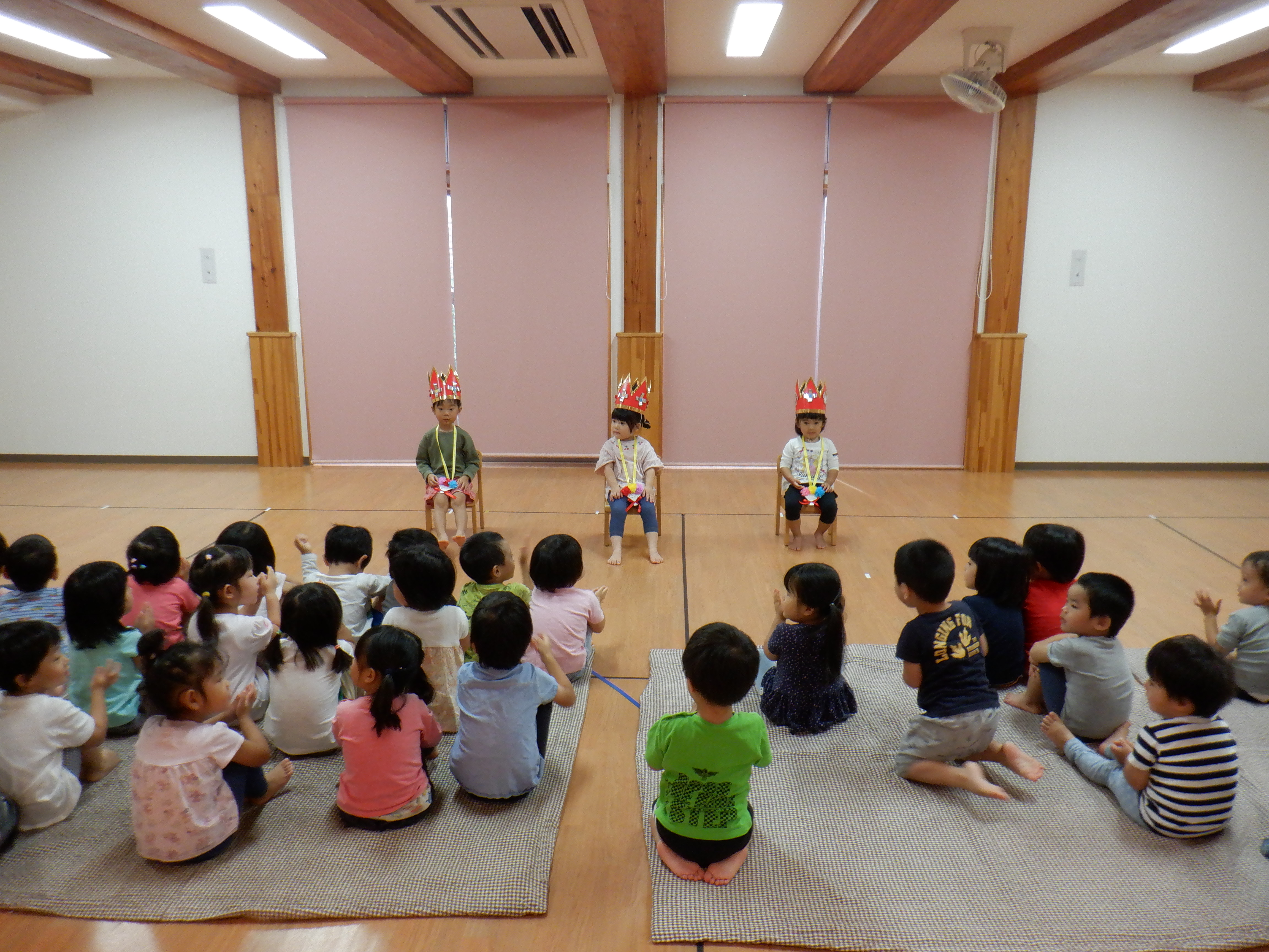 今月は7名のお友だちが誕生日を迎えました。とても温かい目で見守ってくれる子どもたち。誕生児たちも安心したのか、笑顔で質問に答えてくれました。